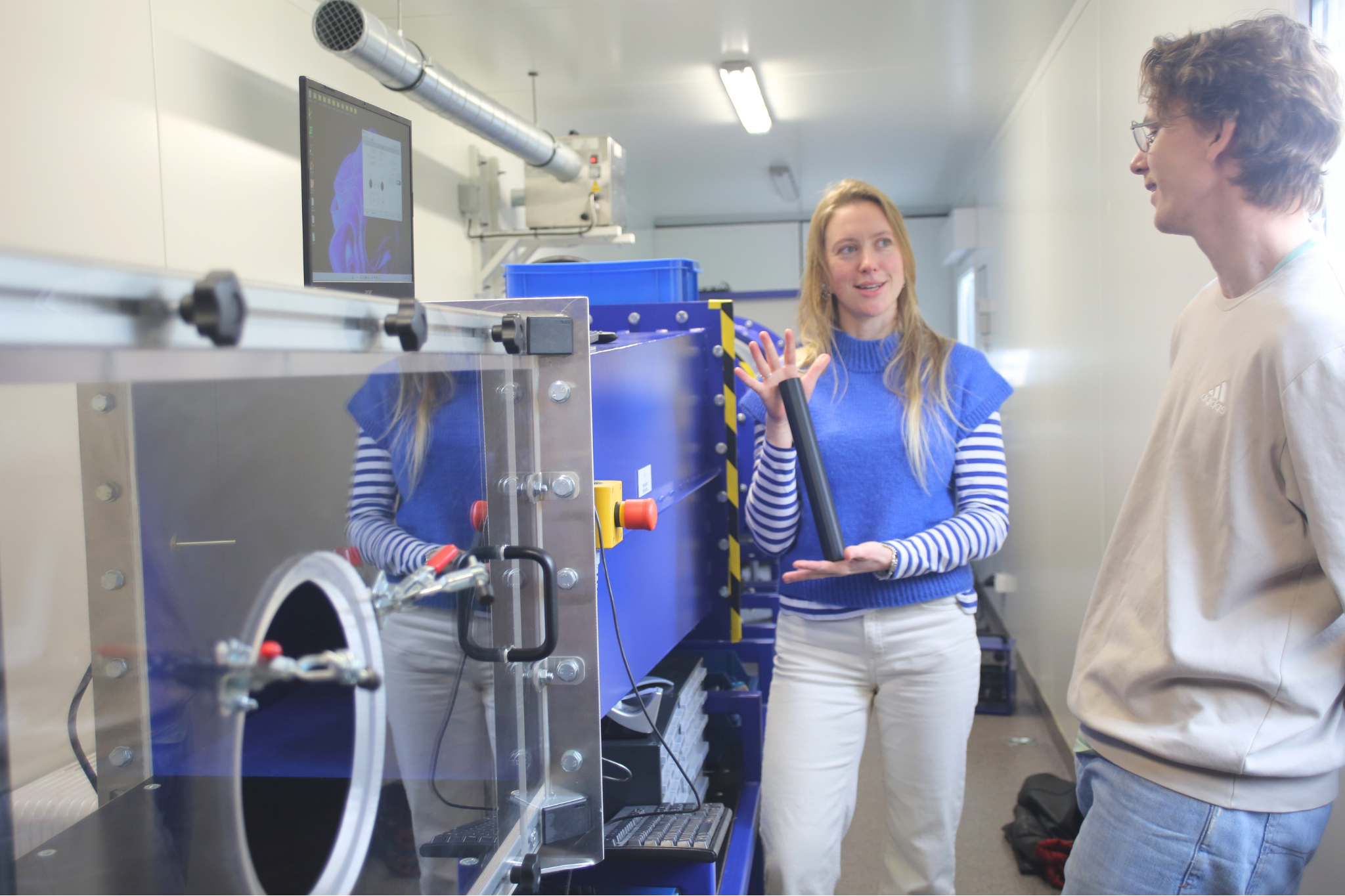Last week, our engineers Nikolai Skorpe Aasprong and Görel Wirenborn joined forces with Knut Erik Teigen Giljarhus and Jon Erik Karlsen at the University of Stavanger (UiS) for a full-scale testing session in the university’s wind tunnel. The goal: to explore how different outer shell geometries influence the formation and stability of the vortex, the very heart of our technology.